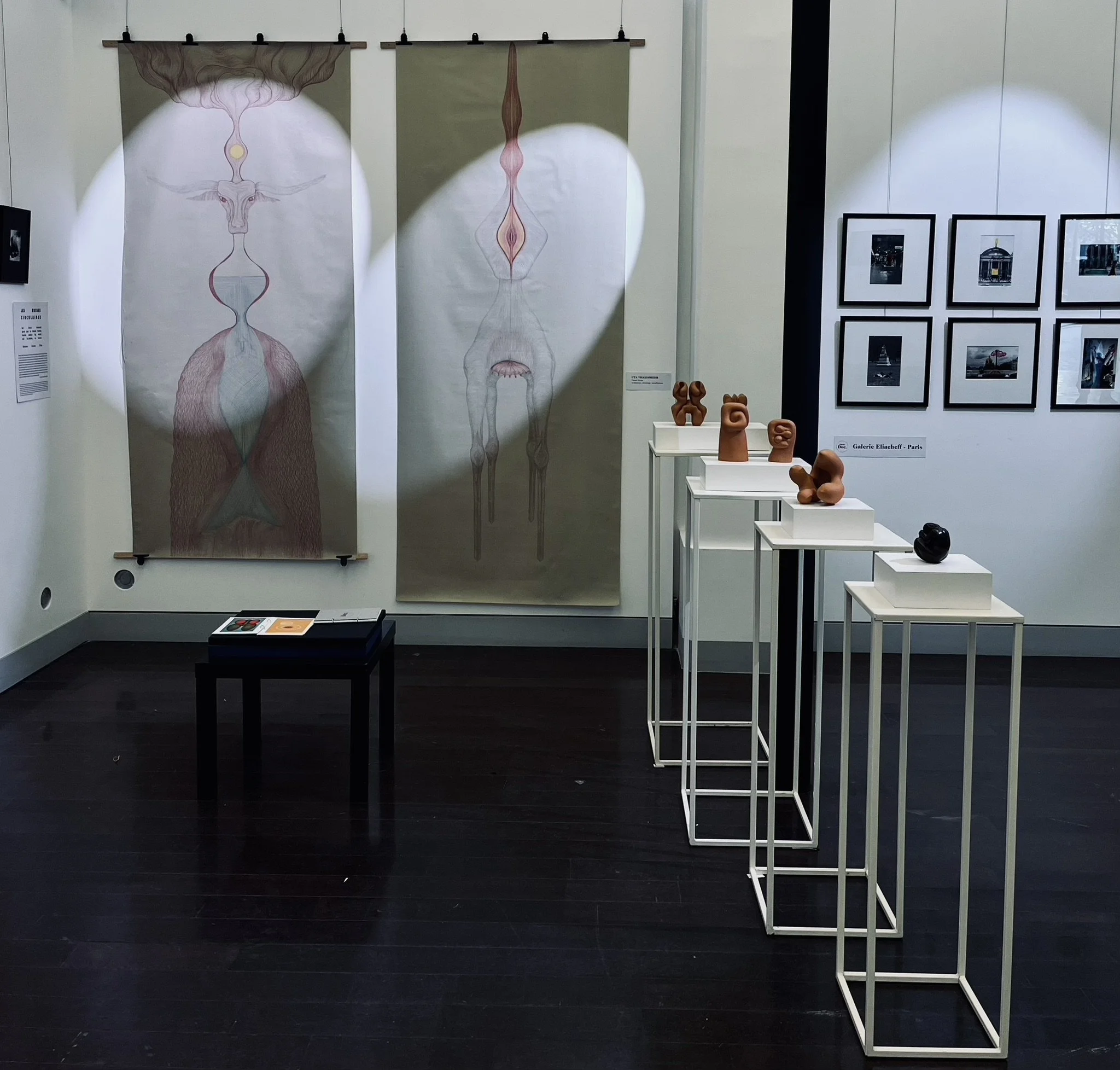 Son atelier devient un espace vivant où dessins et sculptures dialoguent dans un mouvement continu, inscrivant et effaçant tour à tour les empreintes d’un palimpseste intime. Cette approche reflète un respect profond des réalités parallèles qui cohabitent dans l’œuvre de l’artiste.