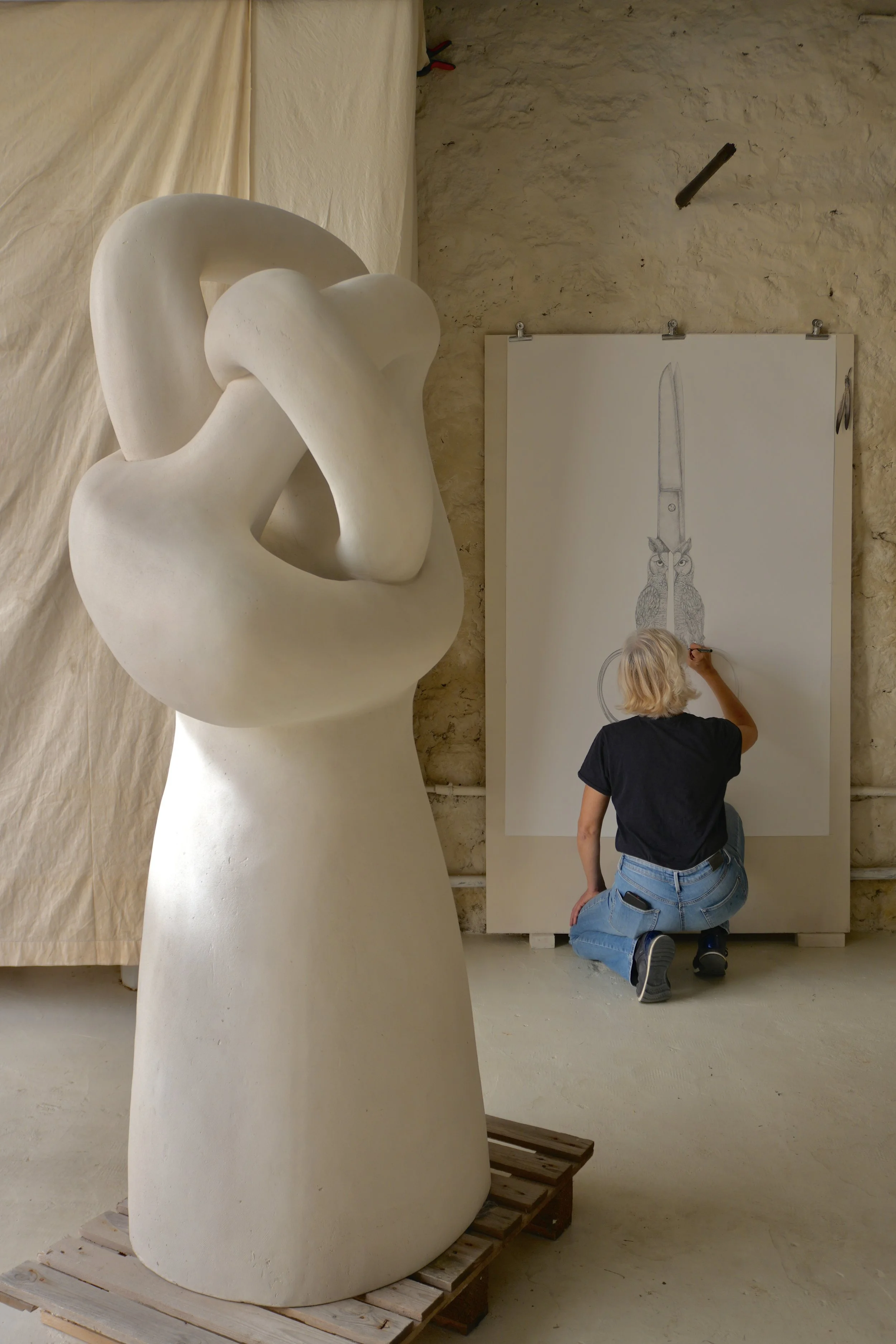 AWA is a sculpture nearly two meters high, created in white marble resin.