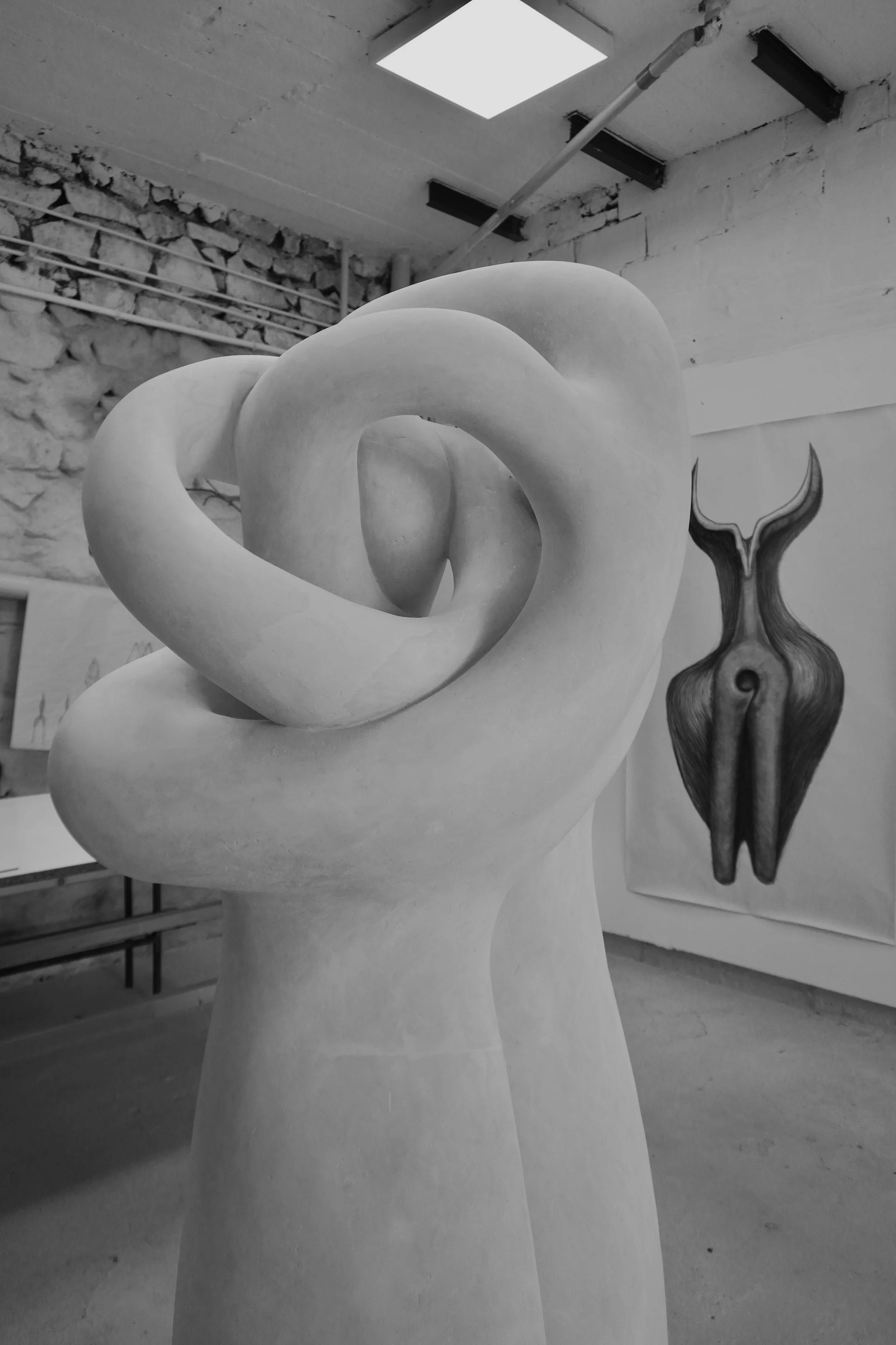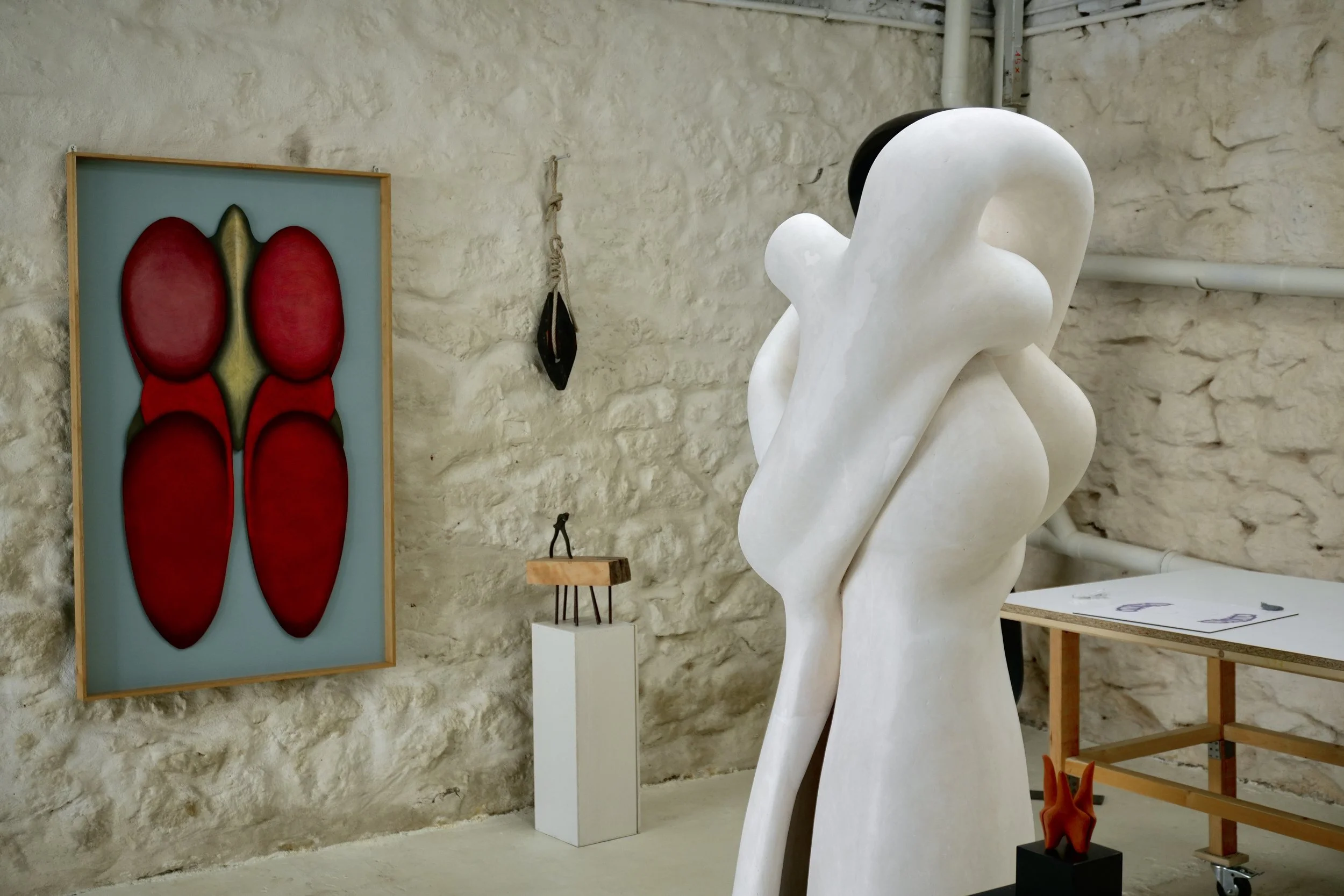 Its organic, flowing form unfolds like an embrace, balancing strength and softness. Depending on the angle, it may appear as two intertwined figures or as a protective, timeless presence.